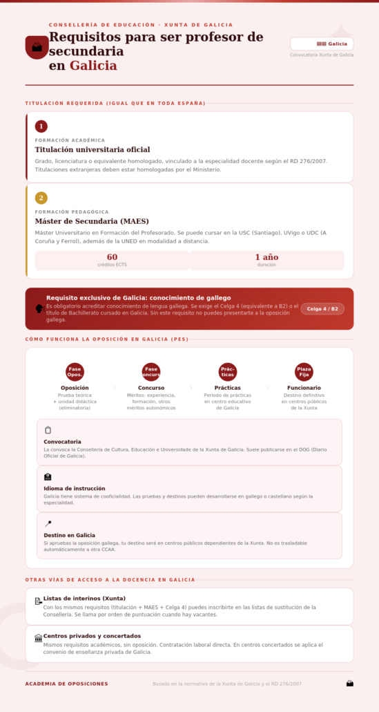 Para ser profesor de secundaria en Galicia necesitas acreditar competencia en lengua gallega.