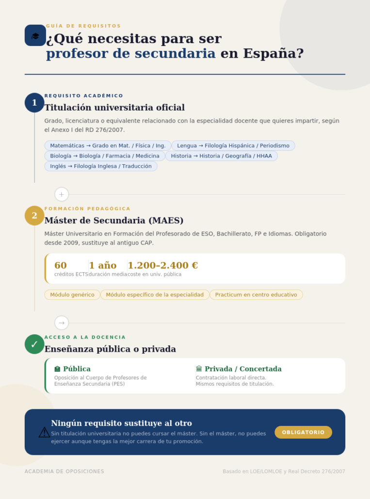 Este punto es innegociable. Para ser profesor de secundaria necesitas el: